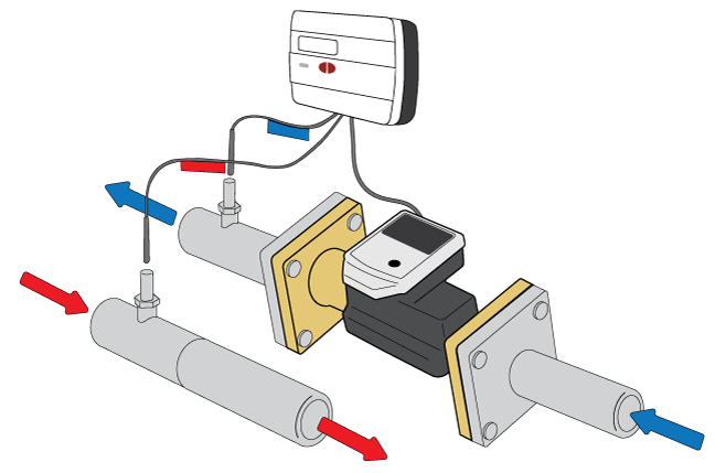 Example of installation on return pipe combined with the HYDROSPLIT-M3 heat/ BTU calculator