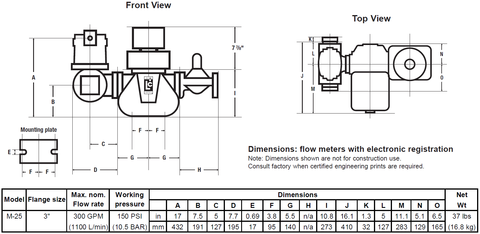 M25P1 METER LESS REGISTER AND GEAR PLATE