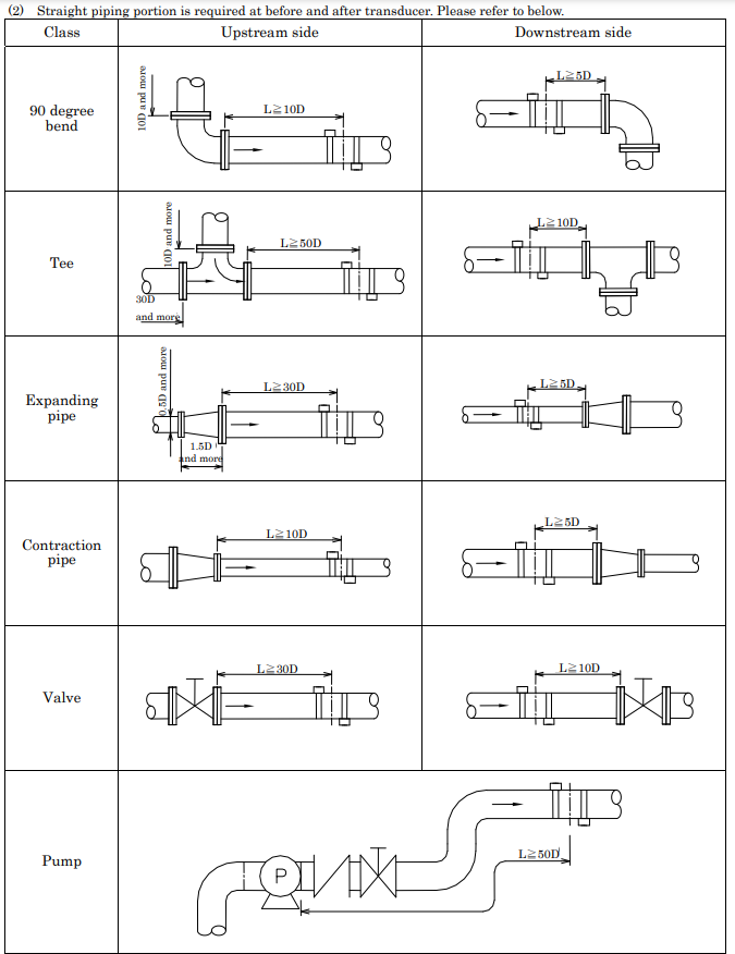(2) Straight piping portion is required at before and after transducer. Please refer to below.