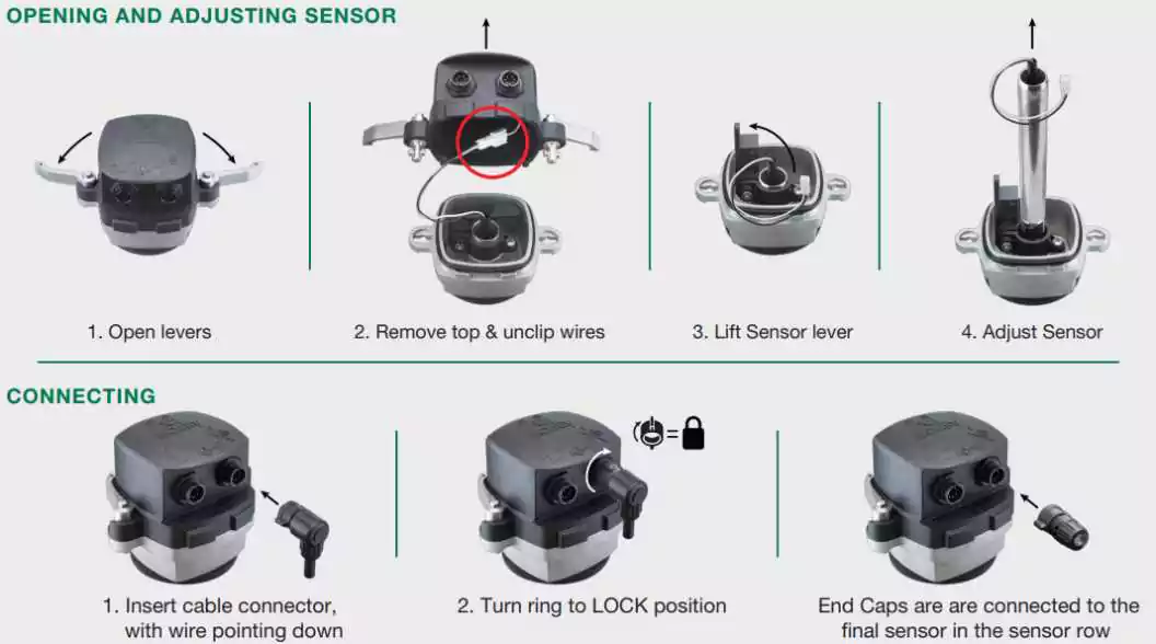 Quick connectors on the sensor make it easy to install and repair the sensor, and a new sensor lever makes it possible to change the sensor's height without the need of tools and without worrying about corrosion.