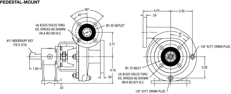The versions are also available as PumPAKs® and are made to close-couple to 56C and 145TC frame electric motors. Pedestal is one more mounting option.