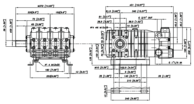 Heavy duty triplex pumps made of stainless steel that can handle corrosive liquids with a flow rate of 275 lpm and a pressure of 2900 psi (200 bar).