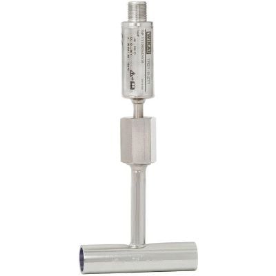 The fixing of the measuring insert onto the pipeline is achieved using a pipe adapter. The measuring insert is spring-loaded and the sensor tip is isolated against the ambient temperature through the silicon lining of the pipe adapter.