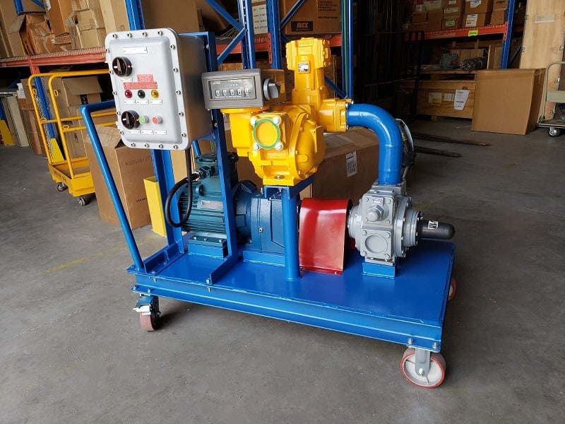 This skid is designed to achieve a flow rate of approximately 1,000 liters per minute (LPM) at a pump speed of 640 revolutions per minute (rpm). The purpose of the skid is to efficiently transfer fuel in bulk applications, ensuring quick and smooth transfers with minimal pressure loss.