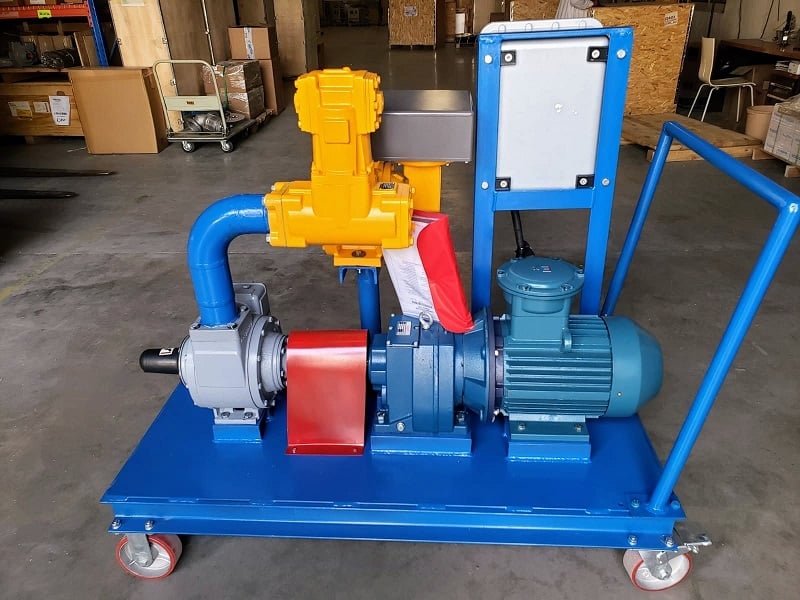 The pump is directly coupled to an explosion-proof (Ex-proof) motor with a gear reducer. This type of motor is designed to operate safely in environments where explosive gases or materials might be present. The gear reducer helps to reduce the speed and torque output of the pump to match the desired flow rate and conditions.