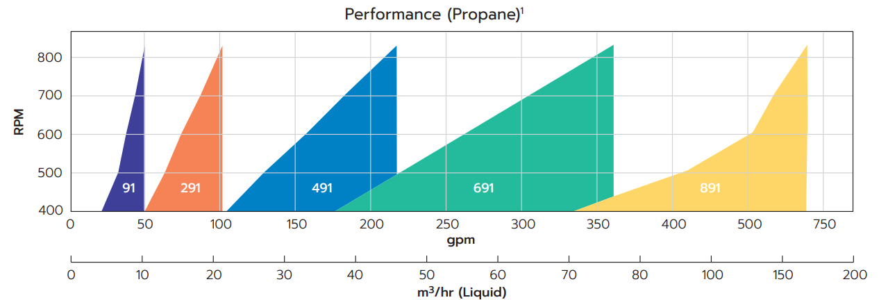 Maximum flow-propane: gpm (m3/hr) |