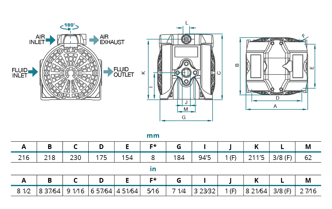 Double diaphragm air-operated pumps for dosing, spraying, transporting, evacuating, and dispensing a range of fluids. Ideal for common applications requiring medium flow rates. Pump wetted components can be used in corrosive situations and are compatible with even the most aggressive fluids. Polypropylene is used to make the air motor's air chamber covers and directional air valve.