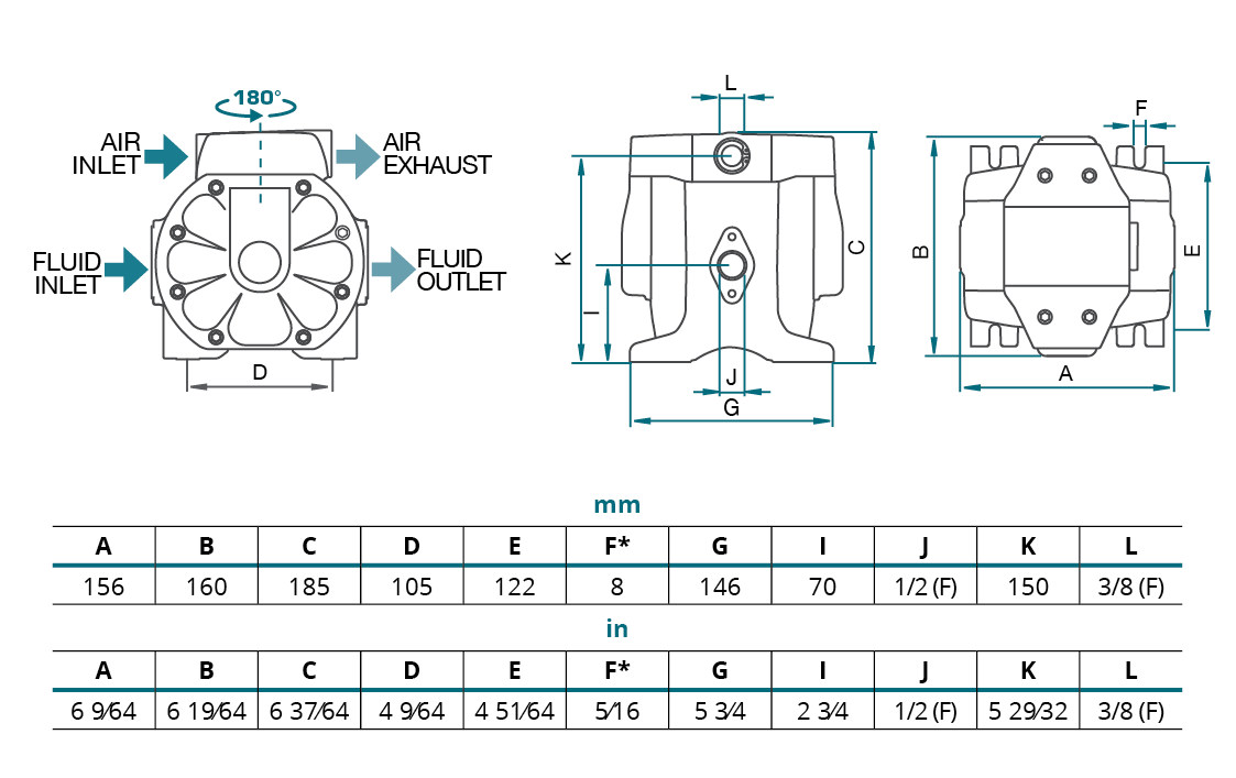 Double diaphragm air-operated pumps for a range of fluid distribution tasks, including dosing, spraying, transferring, evacuating, and evacuation. Suitable for typical applications requiring modest to medium flow rates. For the most demanding applications, very durable metal pumps are manufactured. In potentially explosive environments (Ex II2 GD IIB/IIC 95 °C), this model of pump is fully groundable and ATEX certified.