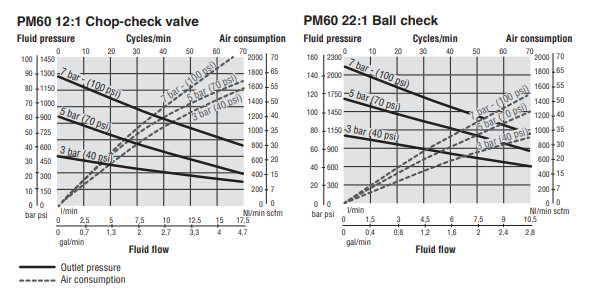 *Flow rates with ink at 7 bar – 100 psi air inlet pressure and 60 cycles per minute. SAMOA recommends pumps to work at 30 cycles per minute for reduced wear on moving parts and minimized maintenance. |