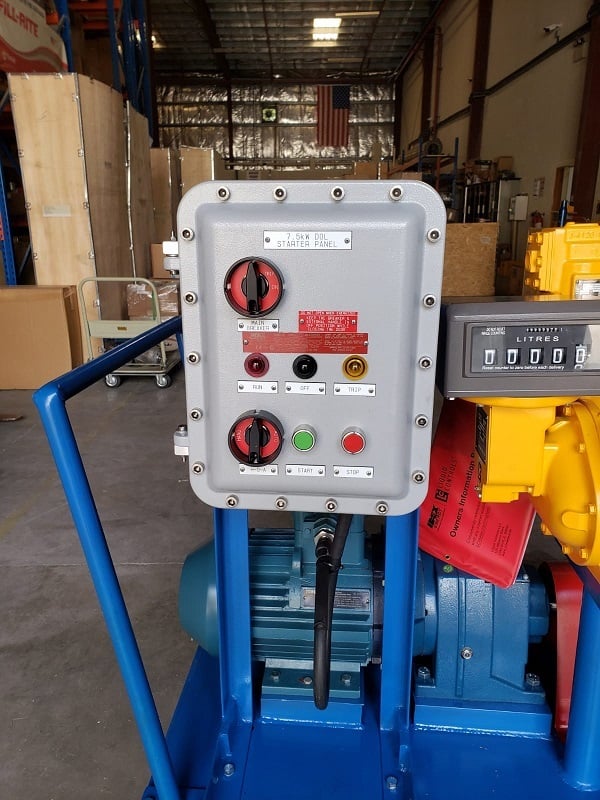 This skid is designed to achieve a flow rate of approximately 1,000 liters per minute (LPM) at a pump speed of 640 revolutions per minute (rpm). The purpose of the skid is to efficiently transfer fuel in bulk applications, ensuring quick and smooth transfers with minimal pressure loss.